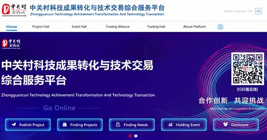 Le site officiel de la plateforme de valorisation des réalisations techniques et de transaction dans le domaine technique du quartier de Zhongguancun