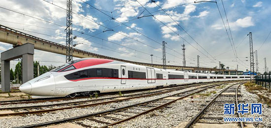 C'est le premier train de fret ferroviaire à grande vitesse au monde avec une vitesse de 350 km/h, ce qui améliorera considérablement le niveau d'innovation indépendant des équipements de transport ferroviaire en Chine. (Wu Kechao / Xinhua)