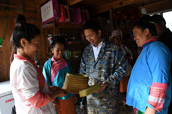 Pan Fangjian (3e à droite) vit dans un petit village de la préfecture autonome miao et dong de Qiandongnan de la province du Guizhou (dans le sud-ouest de la Chine). L'entreprise d'Internet et de la technologie qu'il a créée fonctionne comme le transit pour acheminer les colis des autres entreprises de livraison express et de services logistiques vers les villages. Elle assure la livraison des colis "au dernier kilomètre" dans les zones rurales. Avec plus de 120 points relais, ses services couvrent déjà plus de 100 villages des comtés de Rongjiang et de Congjiang. Dans la photo, Pan Fangjian parle avec des villageois dans un point relais. (Wang Bingzhen/Pic.people.com.cn)