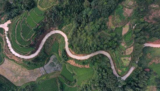 Ces dernières années, les routes longues de 1 037 kilomètres ont été construites dans le comté de Sanjiang pour favoriser le développement des industries sur 518 000 mu (34 533 hectares) et réduire la pauvreté. La photo prise le 13 octobre 2020 montre les routes dans le village d'Yancha du canton de Liangkou du comté autonome dong de Sanjiang de la région autonome du Guangxi (dans le sud de la Chine). (Li Hanchi/Pic.people.com.cn)