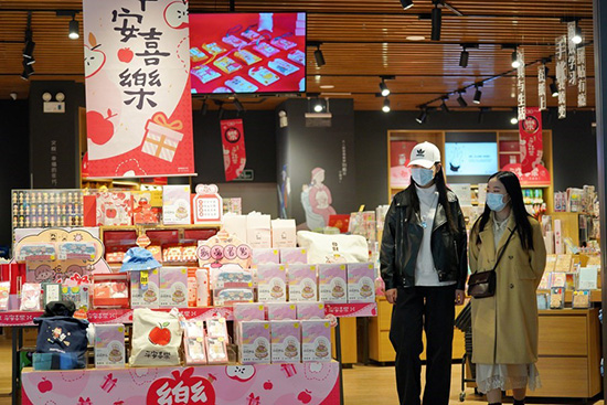 Des clients vus dans un centre commercial du district de Qiaoxi à Shijiazhuang, capitale de la province du Hebei (nord de la Chine), le 5 février 2021. (Photo/Xinhua)
