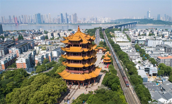 Une vue aérienne de la tour de la Grue jaune, à Wuhan, capitale de la province du Hubei (centre de la Chine). (Photo / Xinhua)