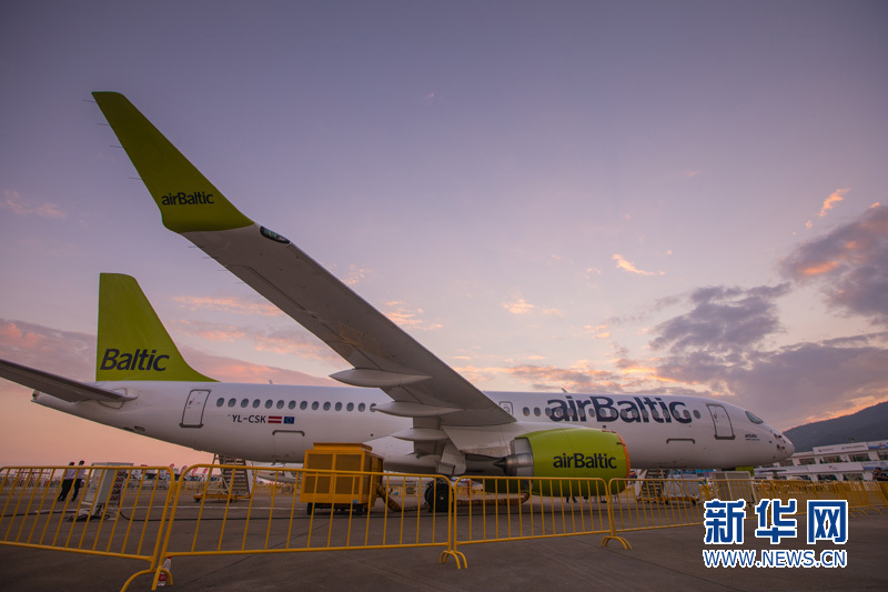 Un avion A220 est exposé au salon aéronautique à Zhuhai, dans la province du Guangdong (sud de la Chine) en 2018. (Photo / Xinhua)