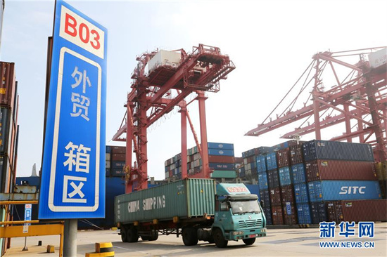 Des conteneurs de commerce extérieur ont été chargés au port de Lianyungang, dans la province du Jiangsu (est de la Chine), le 14 juillet 2020. (Photo / Xinhua)
