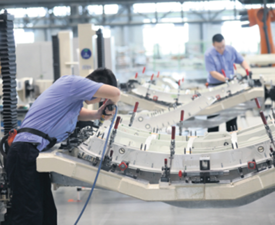 Un employé travaille dans une ligne de production de SACI pour Airbus A220, à la ville de Shenyang, dans la province de Liaoning, nord-est de la Chine (Photo / CHINA DAILY)