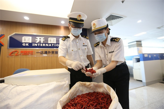 Le personnel des autorités douanières de Changsha vérifie la qualité des piments séchés importés du Rwanda. (Photo / L'Administration des douanes de Changsha)