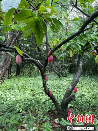 Un cacaotier poussant dans le jardin botanique tropical de Xinglong, dans la province de Hainan (sud de la Chine). (Huang Yi / China News Service)