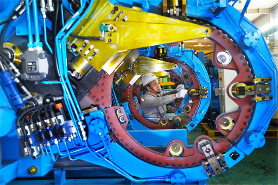 Le 25 avril 2021, un travailleur de la société Taier Heavy Industry Co.,Ltd assemble des robots d'équipements métallurgiques intelligents dans la zone de développement économique de Ma'anshan de la province de l'Anhui (dans l'est de la Chine). (Wang Wensheng/Pic.people.com.cn)