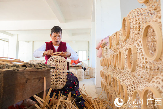 Ces produits tissés en bambou de Zhu Mumang sont soigneusement placés dans l'entrep?t après les processus de coloration, de séchage, d'emballage, en attendant la livraison vers les marchés étrangers. Aujourd'hui, le district de Pingnan est devenu une base d'exportation autonome pour l'artisanat du tissage dans la ville de Guigang, avec 16 entreprises de niveau supérieur, atteignant une valeur de production industrielle totale de 356 millions de yuans de niveau supérieur.