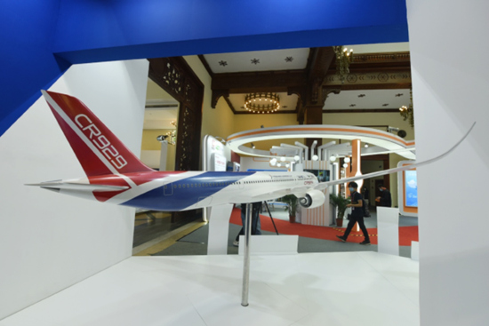 Un modèle d'avion CR929 exposé lors d'une exposition à Shanghai. (Long Wei/Capture d'écran sur Chinadaily)