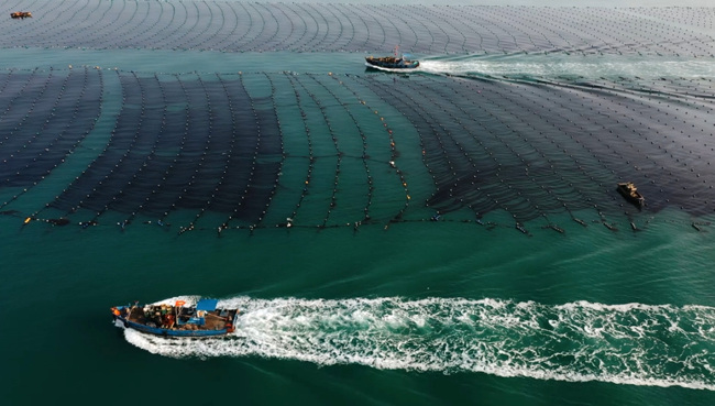 L'hiver est la saison des semailles de varech. A cette époque, à Rongcheng, dans la province du Shandong (est de la Chine), la mer est très animée. Le froid de l'hiver ne freine pas l'enthousiasme des gens qui sont occupés à semer du varech dans la zone de culture de l'algue. Les agriculteurs travaillent nuit et jour, se dépêchant de semer. Des bateaux de toutes tailles traversent la mer pour transporter les semis de varech, semant aussi l'espoir d'une récolte exceptionnelle pour l'année prochaine.