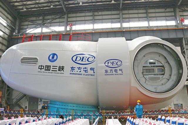 Une éolienne offshore de 13 mégawatts résistante aux typhons développée indépendamment par Dongfang Electric Corporation est sortie le 22 février de la cha?ne de production dans la province du Fujian (est de la Chine).
