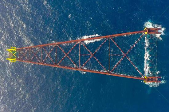 La gaine en eau profonde Haiji-1 a été installée en mer dans la province du Guangdong (sud de la Chine). (Photo fournie par Offshore Oil Engineering Co., Ltd)