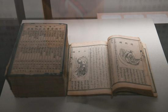 Photo prise le 17 septembre 2021 montrant des documents médicaux anciens exposés lors d'une exposition présentant des reliques de la médecine traditionnelle chinoise au Musée de Chengdu, capitale de la province du Sichuan (sud-ouest de la Chine). (Xu Bingjie / Xinhua)