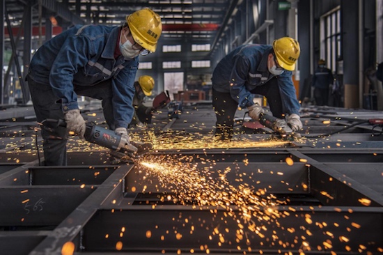 Le 14 décembre 2021, des ouvriers des entreprises récemment créées travaillent dans un parc industriel de fabrication haut de gamme dans la zone de développement économique du comté de Dangshan de la ville de Suzhou de la province de l'Anhui (dans l'est de la Chine). (Cui Meng/Pic.people.com.cn)