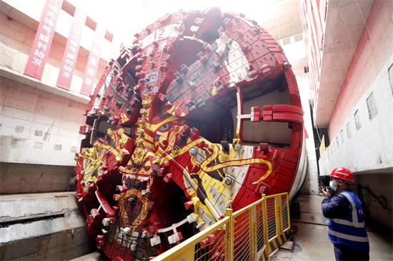 Le tunnelier blindé fabriqué en Chine est sur le point de percer sur le chantier de construction de la ligne 12 du métro de Wuhan, à Wuhan, dans la province chinoise du Hubei (centre), le 29 mai 2022. (Xinhua/Yuan Yonghua)