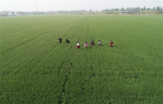 Vue aérienne d'agriculteurs travaillant dans un champ de blé dans le district de Shenze, dans la province chinoise du Hebei (nord), le 10 mai 2022. (Xinhua/Yang Shiyao)
