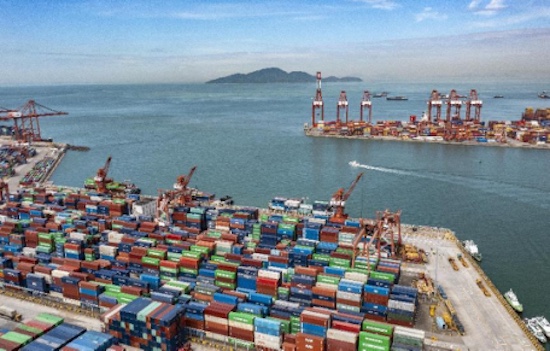 Le 19 mai 2022, la photo montre le terminal conteneur Shekou (SCT) dans une ambiance affairée et ordonnée dans la ville de Shenzhen de la province du Guangdong. (Wang Meiyan/Pic.people.com.cn)