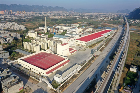 Photo aérienne d'une usine de traitement de la cha?ne du froid dans le district autonome Yao de Du'an, de la région autonome Zhuang du Guangxi, dans le sud de la Chine, le 1er décembre 2021. (Xinhua/Lu Boan)