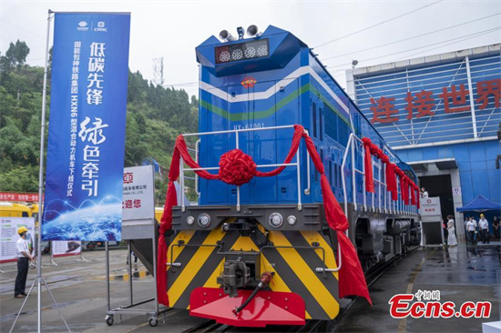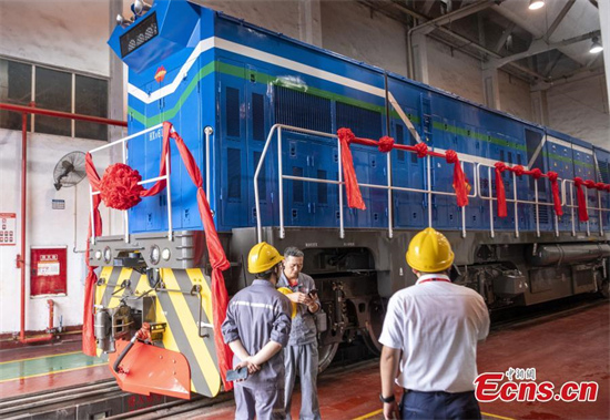 La première locomotive hybride HXN6 commercialisée par la Chine sort de la cha?ne de production à Ziyang, dans la province du Sichuan (sud-ouest de la Chine), le 9 juin 2022.