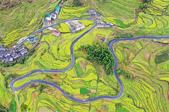 Le 26 mars 2022, la photo aérienne montre des routes dans le village de Yueling du canton de Daxibian du comté de Kaihua de la ville de Quzhou de la province du Zhejiang (dans l'est de la Chine). (Wang Jianlin / Pic.people.com.cn)