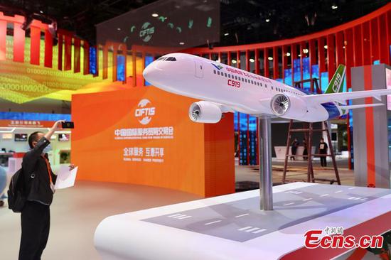Une maquette de l'avion C919, exposée au Salon international du commerce des services de Chine 2022 (CIFTIS), le 28 ao?t 2022. (Photo / China News Service)