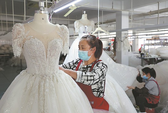 D'après un responsable local, la valeur des exportations de l'industrie des vêtements de mariage du canton a atteint 40 millions de dollars en 2019.
