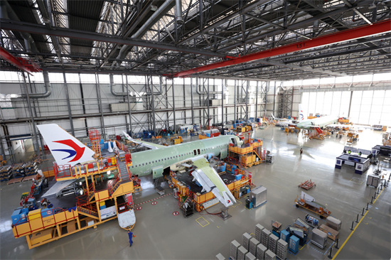 La cha?ne de montage de la famille d'avions Airbus A320 à Tianjin (nord de la Chine). (Photo / Xinhua)