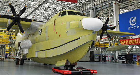Un gros avion amphibie AG600 quitte la cha?ne de montage à Zhuhai, dans la province du Guangdong (sud de la Chine), le 26 décembre 2021. (Photo / China Daily)
