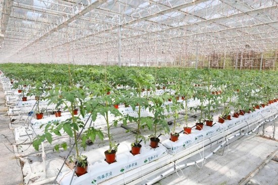 Les tomates de la ? serre intelligente ? poussent bien dans l'usine de tomates néerlandaise de la ferme Sugu, dans la municipalité de Chongqing (sud-ouest de la Chine), le 3 ao?t 2022. (Liu Hui / Pic.people.com.cn)
