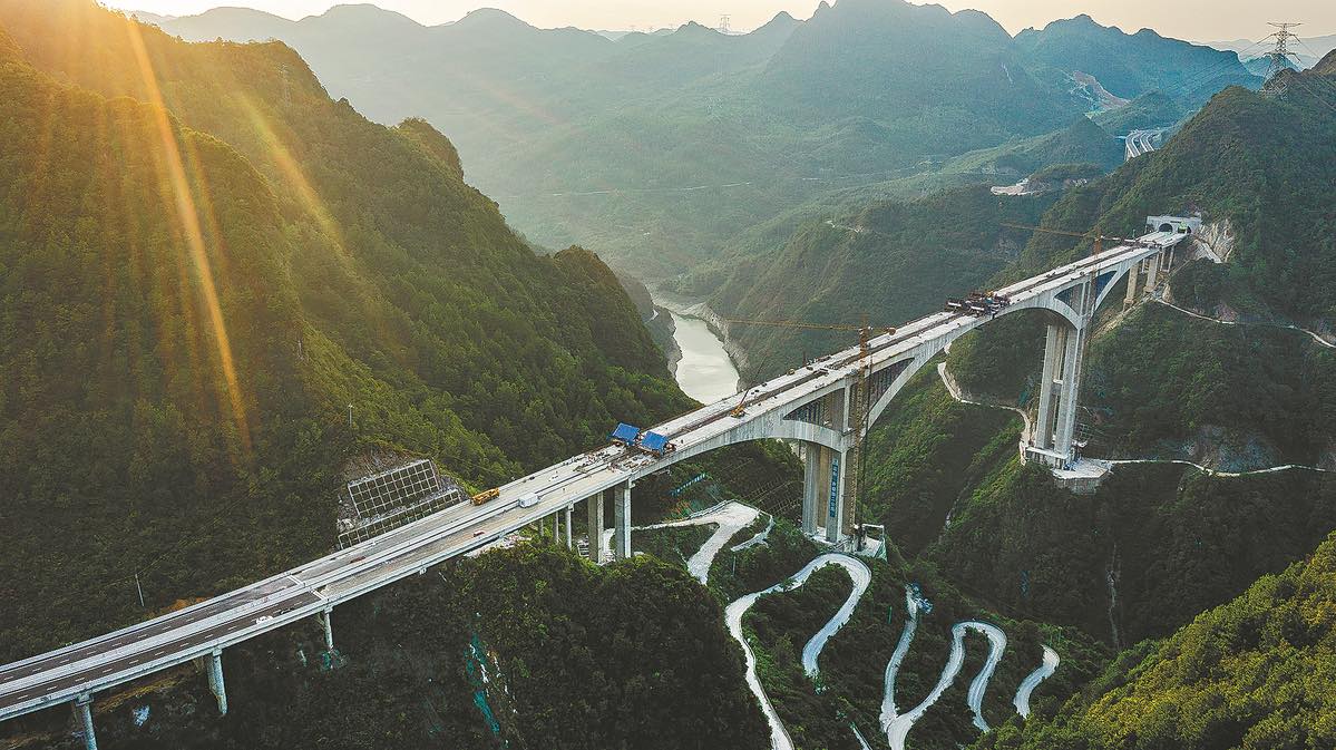 Parallèlement, la construction d'un autre pont de grande envergure dans le Guizhou -le Grand Pont de Wujiang- s'est achevée le mois dernier. Sa longueur totale est de 1 834 mètres, dont 504 mètres enjambant l'eau. En raison de son emplacement montagneux, de sa grande portée et de son petit espace de construction, le pont, constitué de tubes en acier remplis de béton, a présenté de nombreux défis lors de la construction.