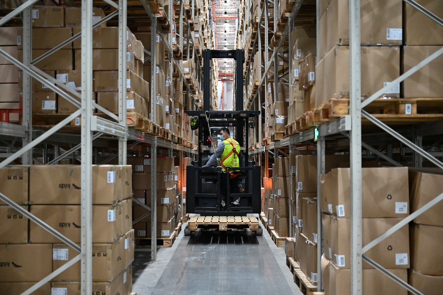 Un employé travaille dans un parc logistique à Jinjiang, ville de la province chinoise du Fujian (sud-est), le 16 mai 2022. (Photo : Zhou Yi)