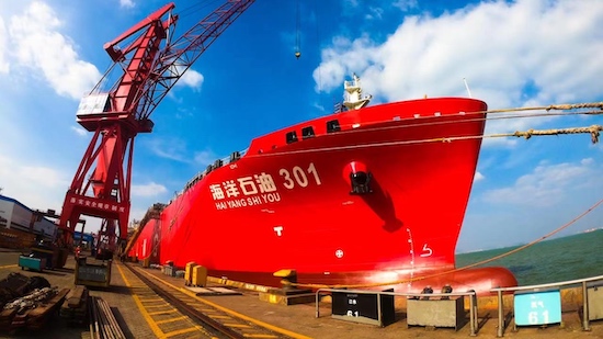 à l'origine un navire de soutage de GNL, l'? Offshore Oil 301 ? (Hai Yang Shi You 301), premier navire de ravitaillement en GNL de Chine, a été mis en service après rénovation mardi à Guangzhou. Il peut assurer le ravitaillement en GNL des grands porte-conteneurs et des navires rouliers avec une capacité nominale de 1 650 mètres cubes par heure.