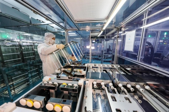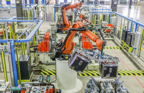 Le 12 novembre 2021, des robots fonctionnent à pleine capacité dans une usine intelligente du parc technologique de Nangang dans la zone de haute technologie dans la ville de Hefei de la province de l'Anhui (dans l'est de la Chine). (Xu Qingyong/Pic.people.com.cn)