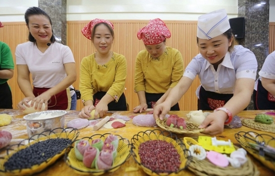 En juin 2020, lors d'une compétition pour les responsables de chambre d'h?te dans le comté d'Yinan de la ville de Linyi de la province du Shandong (dans l'est de la Chine), des responsables de chambre d'h?te préparent les desserts pour le petit-déjeuner. (Wang Yanbing/Pic.people.com.cn)