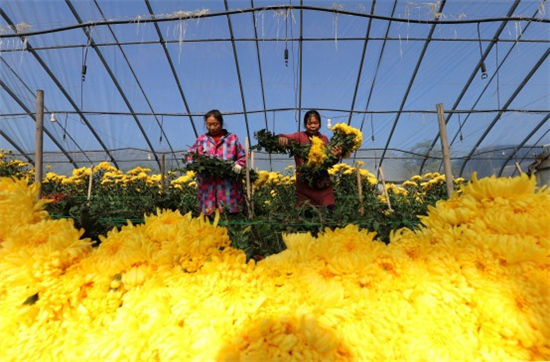 Le solstice d'hiver approche, la saison des ventes des chrysanthèmes débute, les floriculteurs profitent du temps ensoleillé pour cueillir des chrysanthèmes afin d'approvisionner le marché. Ces dernières années, le comté de Dayu de la ville de Ganzhou, province du Jiangxi (centre de la Chine), a activement ajusté sa structure industrielle, développant vigoureusement l' ? économie florale ? sur le mode ? entreprise + base + agriculteurs ?, réalisant le fonctionnement intégré de l'ensemencement, de la production, de la commercialisation et du tourisme, aidant les agriculteurs à s'enrichir et contribuant à revitaliser la campagne.