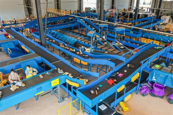 Des colis de livraison express sont triés par un système intelligent dans un parc logistique du comté de Lanshan, à Yongzhou, dans la province du Hunan (centre de la Chine), en octobre 2022. (Peng Hua / le Quotidien du Peuple en ligne)