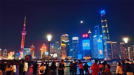Une vue nocturne de Lujiazui, quartier financier de Shanghai, le 8 janvier 2023. (Chen Yuyu/Pic.people.com.cn)