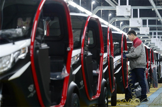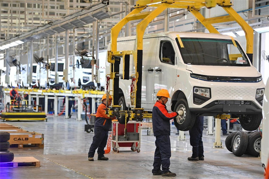 Le 9 février 2023, des travailleurs assemblent des minivans à énergie nouvelle dans une usine d'assemblage dans l'arrondissement de Jialing de la ville de Nanchong de la province du Sichuan (dans le sud-ouest de la Chine). (Li Xiangyu / Pic.people.com.cn)