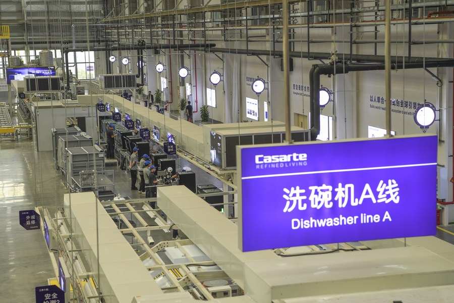 Une cha?ne de production dans une usine de lave-vaisselles de Chongqing Haier Washing Electric Appliances Co.LTD à Chongqing, dans le sud-ouest de la Chine, le 25 septembre 2022. (Photo : Wang Quanchao)