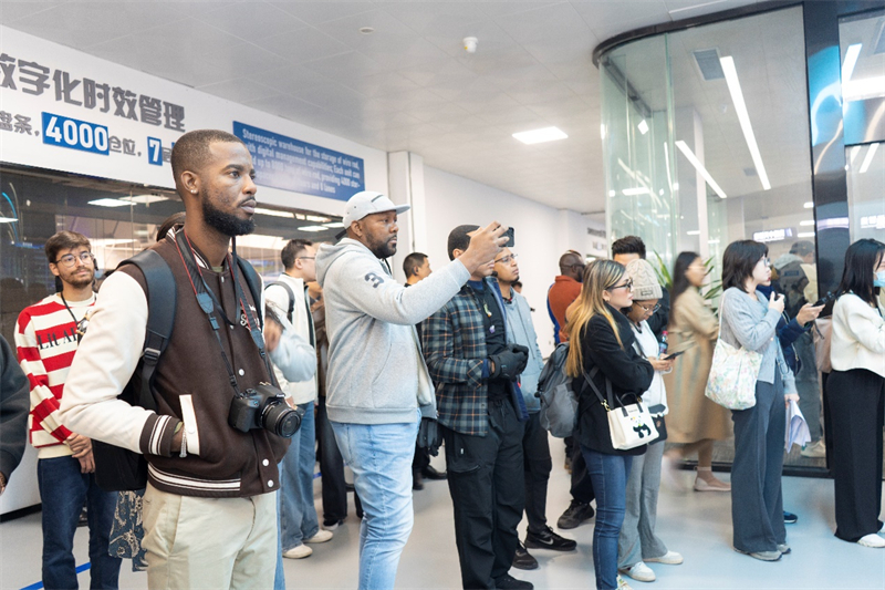 Dans un hall d'exposition de l'entreprise, des images de surveillance en temps réel montrent le fonctionnement de ses ateliers intelligents, avec des véhicules à guidage automatique (AGV) qui font la navette en douceur, attirant les journalistes qui ont saisi la scène avec leurs appareils.