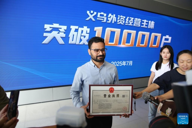 Le 31 juillet 2025, Ali Kamran, un homme d'affaires pakistanais, a re?u le certificat d'enregistrement de sa société Yiwu Al-Wafia Business Consulting Information Co., Ltd. à Yiwu, centre commercial dynamique de la province du Zhejiang (est de la Chine), marquant un jalon important avec 10 000 entreprises à capitaux étrangers enregistrées dans cette ville surnommée le "supermarché du monde".