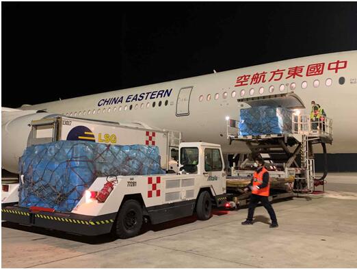 Les employés sont en train de charger des matériels que la Chine a fournis pour aider l'Italie. Photo par Han Shuo, journaliste du Quotidien du Peuple