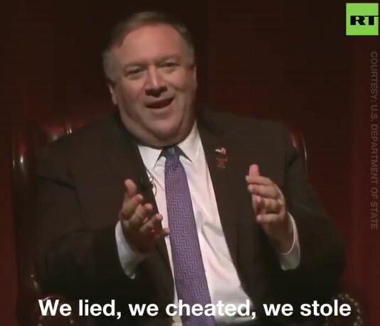 En avril 2019, devant la Texas A & M University, Mike Pompeo a expliqué dans son discours comment la CIA a formé des agents : ? Nous mentons, trichons, volons, et nous avons une formation complète... ?