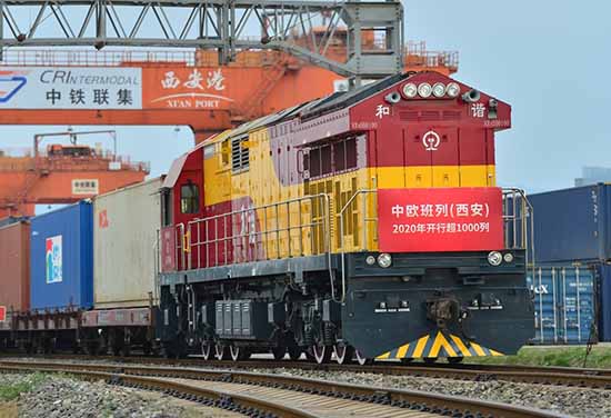 Durant l'épidémie, les trains de fret Chine-Europe, l'axe logistique important facilitant le commerce entre les pays riverains de "la Ceinture et la Route", ont montré leur importance. En seulement 12 jours, les trains de fret Chine-Europe au départ de la ville de Xi'an du Shaanxi peuvent parcourir 4 000 miles (6437 kilomètres) et arriver à Izmit, ville c?tière de la mer de Marmara en Turquie. Ils ont réduit de moitié le délai de transport maritime.