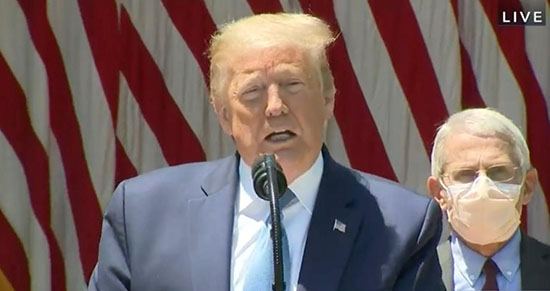 Le président des états-Unis Donald Trump a déclaré que l'Institut national de la santé (National Institute of Health, NIH) américain avait commencé à développer un vaccin contre le COVID-19 le 11 janvier lors d'une conférence de presse le 15 mai. (Capture d'écran de C-Span)