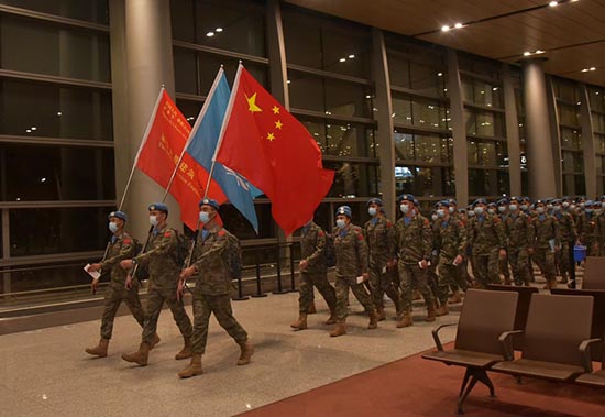 205 officiers et hommes du deuxième échelon de la 19e force chinoise de maintien de la paix au Liban partent depuis l'aéroport international Changshui de Kunming, capitale de la province du Yunnan, le 18 ao?t. (Zhang Zhengju / Pic.people)