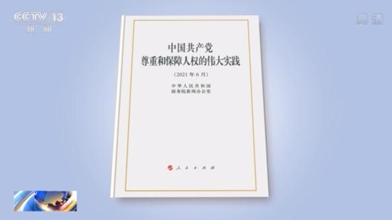 Le 24 juin, le Bureau de l'Information du Conseil des Affaires d'Etat a publié un livre blanc sur la pratique du Parti communiste chinois en matière de respect et de protection des droits de l'homme. (Photo / Capture d'écran de CGTN)