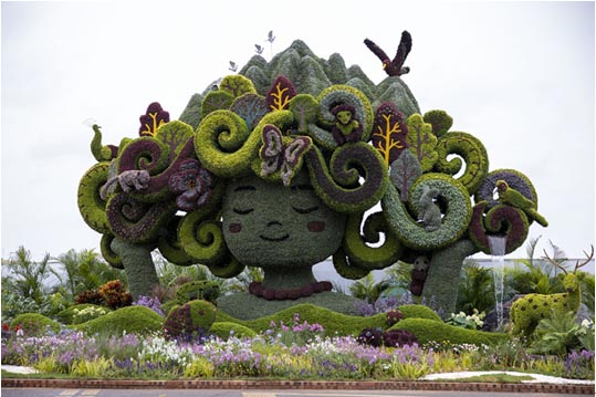 Le 11 octobre 2021, la 15e réunion de la Conférence des parties à la Convention des Nations Unies sur la diversité biologique (COP15) s'est ouverte à Kunming, capitale de la province du Yunnan (sud-ouest de la Chine), la ? Ville du printemps éternel ?. La photo montre le parterre de fleurs à thème à l'extérieur de la conférence. (Weng Qiyu / Pic.people.com.cn)