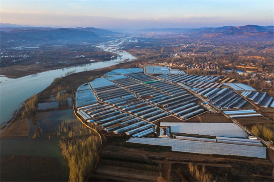 Dans le canton de Dongming du comté de Lushi, à Sanmenxia, dans la province du Henan (centre de la Chine), des rangées de serres de légumes brillaient au soleil, le 19 novembre 2021. (Cheng Zhuanyi / Pic.people.com.cn)